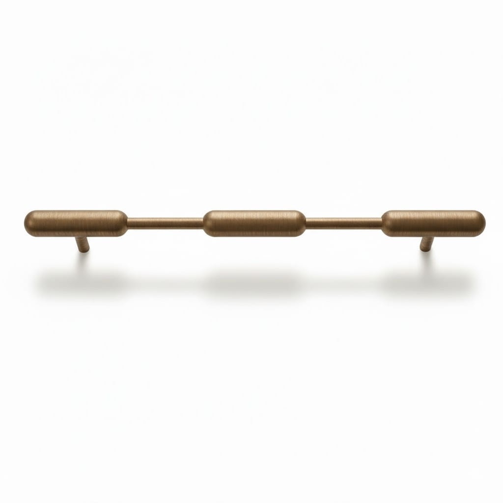 Ten model to połączenie szlachetnego materiału i industrialnego minimalizmu. Charakterystyczna forma złożona z trzech obłych segmentów połączonych smukłymi rurkami sprawia, że uchwyt prezentuje się lekko, a zarazem niezwykle luksusowo. Uchwyt został wykonany z litego mosiądzu pokrytego patyną, dodatkowo zabezpieczony lakierem. Design inspirowany formami organicznymi i nowoczesną rzeźbą idealnie wpisuje się w trendy typu soft minimalism oraz nowoczesne wnętrza. Świetnie sprawdzi się zarówno przy wysokich frontach szaf, jak i w szerokich szufladach komód, nadając im indywidualny styl.