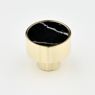 Złota gałka meblowa z mosiądzu i czarnego marmuru