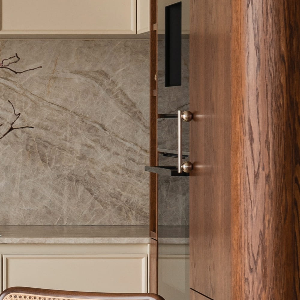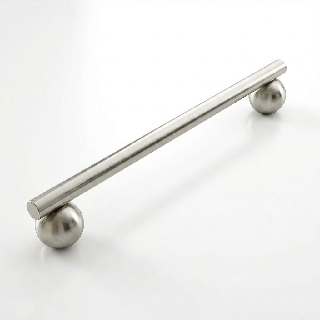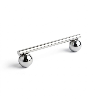 Autorski uchwyt meblowy, zaprojektowany w naszej pracowni, wykonany ręcznie przez polskich rzemieślników. Unikalny kształt uzyskany przez połączenie sferycznych kształtów ze smukłym poprzecznym wałkiem. W kolekcji jest T-bar oraz reling w dwóch rozmiarach, rozstawem otworów pasujący na zamianę za uchwyty z Ikea. Opcję należy wybrać z rozwijanego paska po prawej stronie.