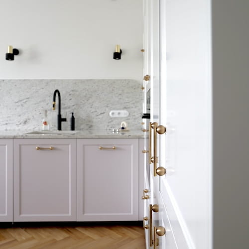 Autorski uchwyt meblowy, zaprojektowany w naszej pracowni, wykonany przez polskich rzemieślników. Unikalny uchwyt uzyskany przez połączenie sferycznych kształtów ze smukłym poprzecznym wałkiem. W kolekcji jest T-bar oraz reling w dwóch rozmiarach, rozstawem otworów pasujący na zamianę za inne uchwyty. Opcję należy wybrać z rozwijanego paska po prawej stronie. Dzięki takiej wymianie można bardzo łatwo odmienić swoją obecną kuchnię i nadać jej niesamowity modernistyczny charakter.